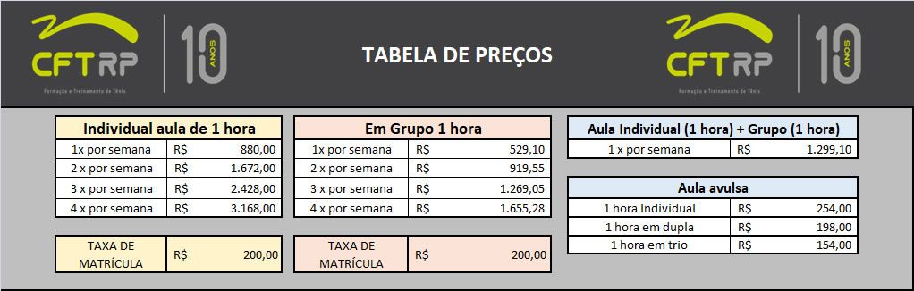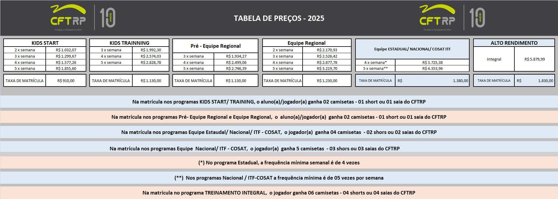Tabela de Preços - Centro de Formação e Treinamento CFTRP